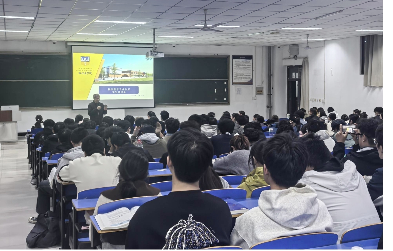 随后,路成吉围绕“专业认证与学生发展” 展开讲话。他直指核心:“临床医学专业认证通过与否,直接决定专业能否持续办学,是关乎学院生存发展的‘生命线’。” 针对 2023 级学子处于 “知识积累关键期、考研备考起步期” 的特点,他提出三点具体要求:一是锚定校内学习核心,深耕内科学、外科学等核心课程,强化临床技能操作训练,以扎实的专业基础支撑认证评价;二是科学规划考研路径,合理统筹考研报名时间节点,提前调研目标院校复试科目与考核标准,实现 “日常学习与考研备考双向赋能”,用优异成绩展现学院教学质量;三是明晰 “个人成长与认证的共生关系”,教学质量提升是认证成功的核心动力,而同学们积极参与课堂互动、规范完成实践任务、主动反馈学习问题,都是助力认证的重要力量。他鼓励学子以 “专业主人翁” 姿态,与学院同频共振,共同守护专业发展根基。